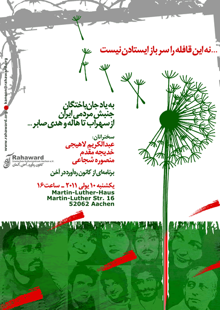 آخن (آلمان): مراسم بزرگداشت جان‌باختگان جنبش مردمی ايران، با حضور عبدالکريم لاهيجی، خديجه مقدم و منصوره شجاعی، دهم ژوئيه