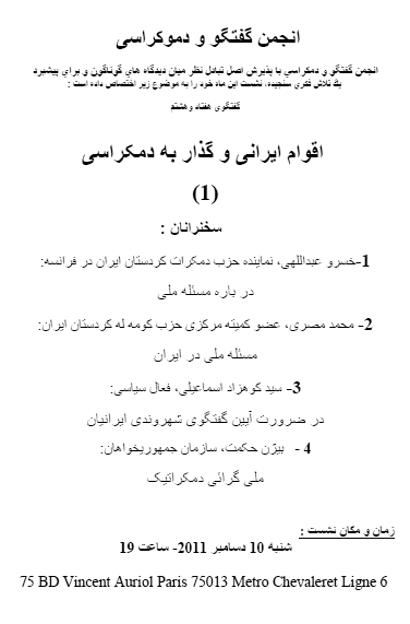 پاريس: سمينار "اقوام ايرانی و گذار به دمکراسی"، ۱۰ دسامبر